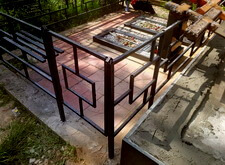 По центру участка собираем круглый столик, в качестве ножки для него используем одну из балясин.