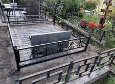 В ходе работы над данным заказом нам предстояло: переустановить покосившийся широкий памятник из чёрного гранита; покрасить обветшавшее от времени ограждение; обновить надписи на надгробье; установить прямоугольный цветник, а также выложить землю на участке гранитной брусчаткой. Приехав на место захоронения мы застали могилу в заброшенном состоянии: на всей её территории росла сорная трава, практически полностью скрывавшая памятник.